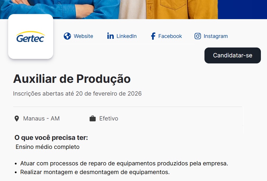 Carreira, Vagas de EmpregosEncerra HOJE Recebimento de Currículos para Trabalhar na Gertec Da Amazônia LTDA André Lucas | fevereiro 20, 2026