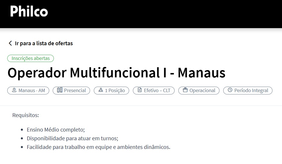 Vagas de EmpregosPhilco Contrata para Auxiliar na montagem, Produção e Embalagem de Produtos André Lucas | outubro 14, 2025
