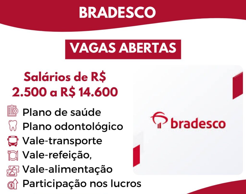 Vagas de EmpregosBradesco abre vagas para nÃvel médio e superior com salários de R$ 2.500 a R$ 14.600 André Lucas | novembro 24, 2025