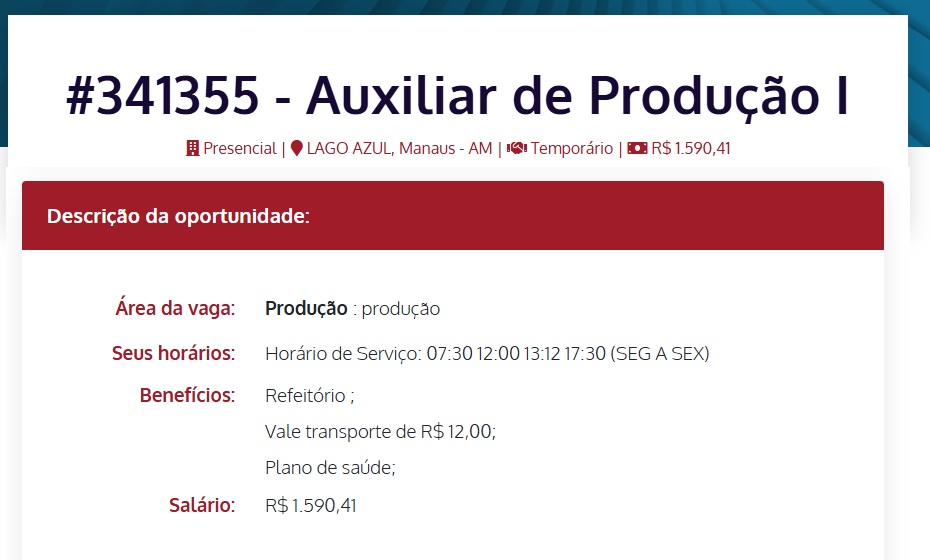 Vagas de EmpregosDisponibilidade para Trabalhar em Escala 5×2 (VAGA: Auxiliar de Produção) André Lucas | janeiro 9, 2026